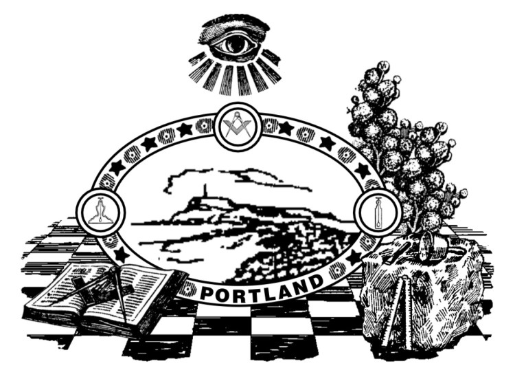 The Lodge emblem initially was the square and compasses incorporating the “All Seeing Eye” but on the 23rd January 1948 this was changed to a facsimile of Portland as viewed from the causeway linking it to Weymouth. This is included in the Lodge banner which was presented by member Bro. Louis Basso on April 23rd 1954. This original banner now resides in a display cabinet in the Portland Freemason Hall, it having been replaced by a new one at a ceremony on September 27th 2013 attended by the Provincial Grand Master Right Worshipful Brother Richard Merritt, his deputy, his assistant and 14 active Provincial Officers.