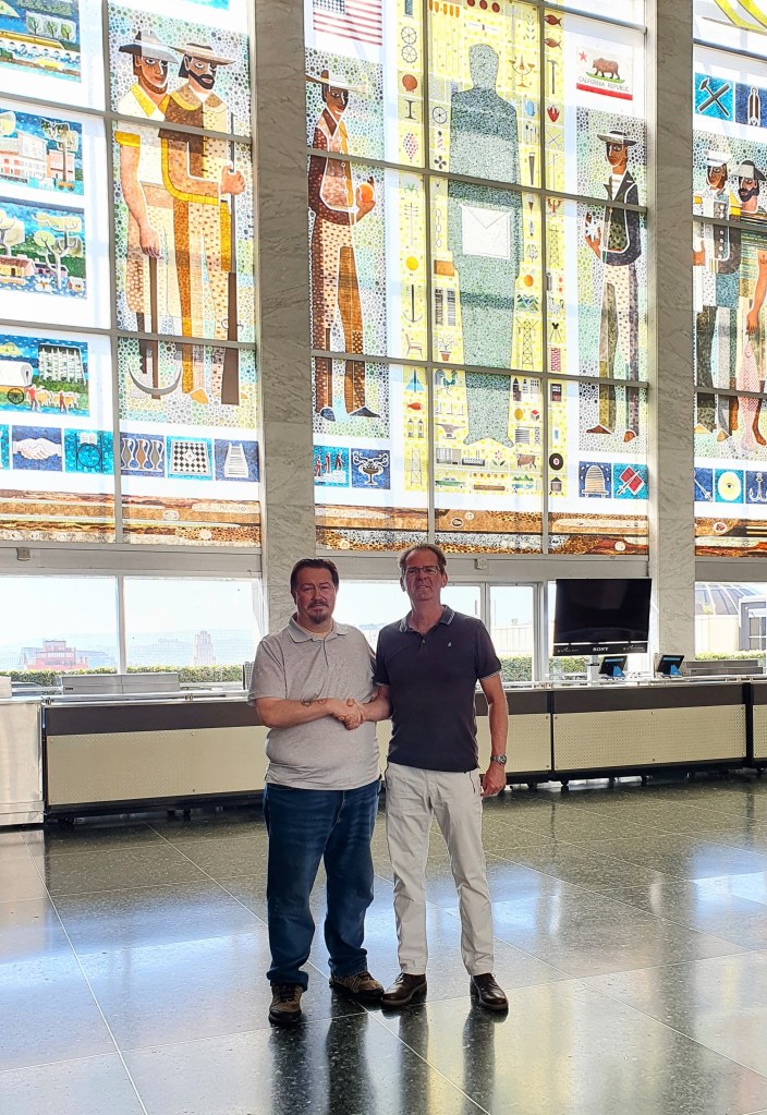 September 29th 2022, Chris Barrett met Bro Jason Harding who took him on a tour of the Grand Lodge of California in San Francisco. First Chris presented Jason with the Grand Lodge of California Nautical Cable Tow, especially crafted by WBro Brian Barton, for the occasion. Jason gladly accepted the Nautical Cable Tow on behalf of the Grand Master M.W. Jeff Wilkins and placed it on his desk during the walk around of the building. A history of Californian Freemasonry was explained and included a variety of handmade aprons and an impressive scale model of Kings Solomons temple which dominated the first floor office complex.